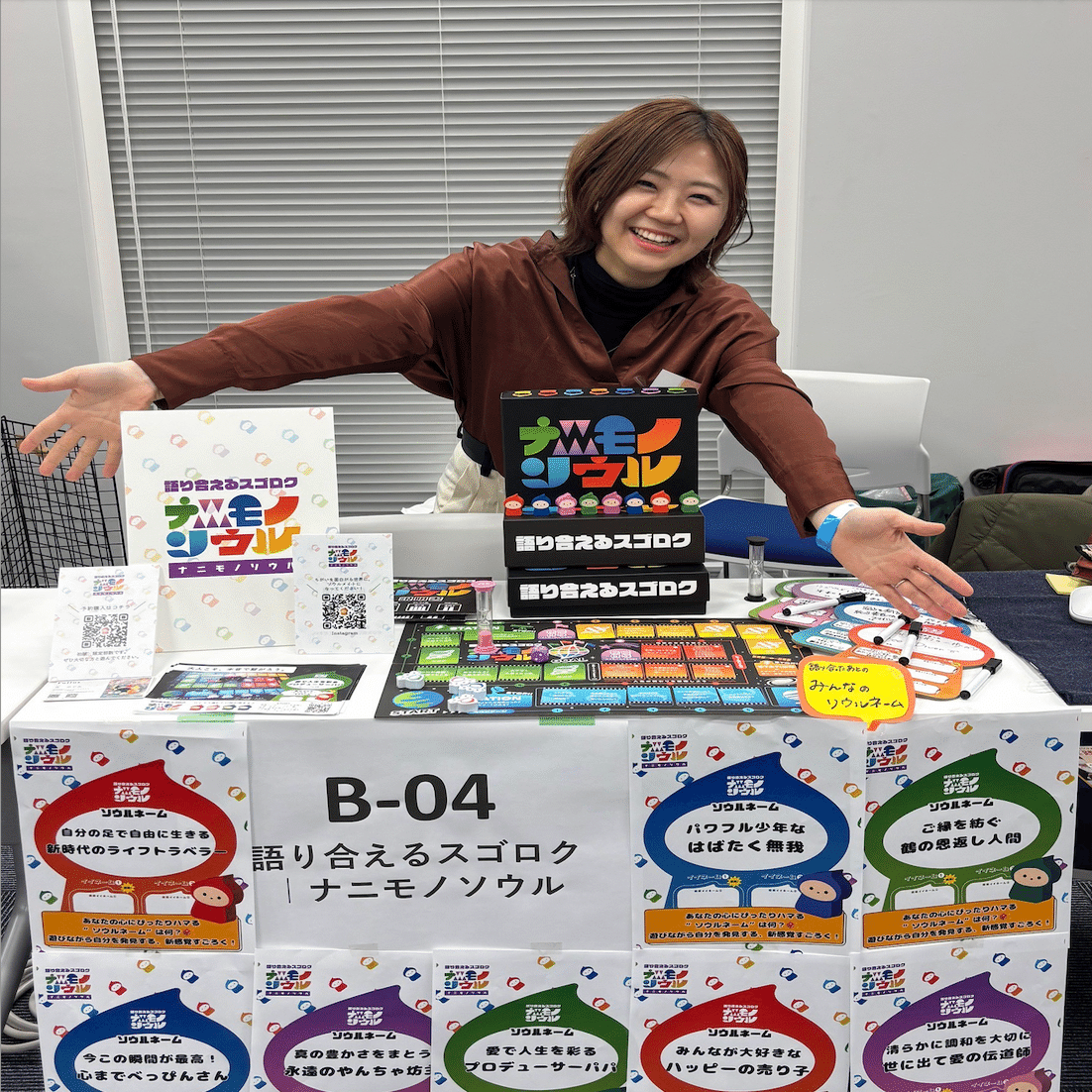 「ゼミでボードゲームを作るから」とイベント参加していた学生さん達もナニモノソウルの前で多く立ち止まってくれて、意見をくれたのも嬉しかったです。ゼミメンバーの絆ポイントupに、ぜひナニモノソウルで遊んでください!教授殿、もしお話届いていましたらぜひにお買い求めください!